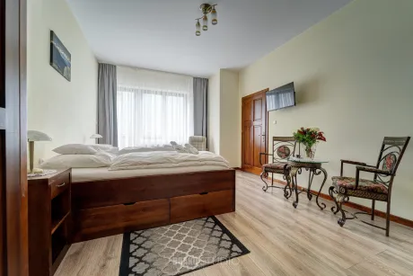 Planujesz wypoczynek i szukasz komfortowego miejsca na pobyt? W naszym pensjonacie oferujemy szeroki wybór pokoi, które spełnią oczekiwania zarówno osób podróżujących w pojedynkę, jak i rodzin czy grup przyjaciół. Każdy pokój został starannie przygotowany, aby zapewnić Ci wygodę, prywatność i spokojny wypoczynek. Bez względu na to, czy cenisz sobie przytulną atmosferę, czy potrzebujesz więcej przestrzeni, znajdziesz u nas idealne rozwiązanie. Nasze pokoje są wyposażone w wszystko, czego potrzebujesz do relaksu po aktywnym dniu – od wygodnych łóżek, przez funkcjonalne meble, aż po estetyczny wystrój, który tworzy przyjemną atmosferę.