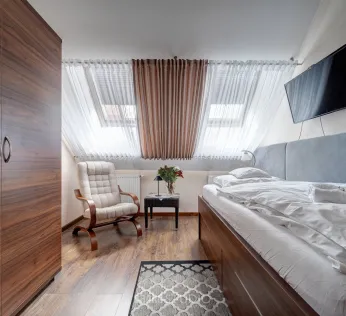 Szukasz miejsca, w którym możesz w pełni odpocząć? Nasz pokój jednoosobowy to doskonały wybór! Jasne wnętrze, przytulny wystrój i starannie dobrane wyposażenie sprawią, że poczujesz się tutaj wyjątkowo komfortowo.